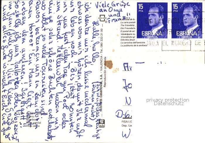 old postcard Altea Stadtansichten Hafen Luftbild postalisch gelaufen Erhaltung siehe scans