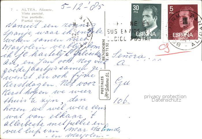 old postcard Altea Teilansicht postalisch gelaufen Erhaltung siehe scans