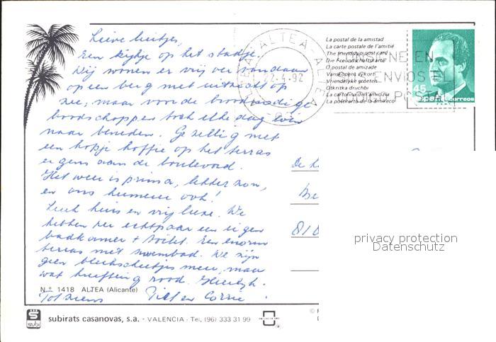 old postcard Altea postalisch gelaufen Erhaltung siehe scans