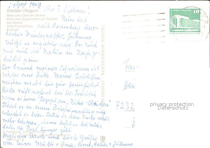 71935123 alte Postkarte Altefaehr Ruegen Cafe am Strand Seglerhafen Strand Altes Fischerhaus Kurhaus postalisch gelaufen Erhaltung siehe scans KatCode: 11110013061001