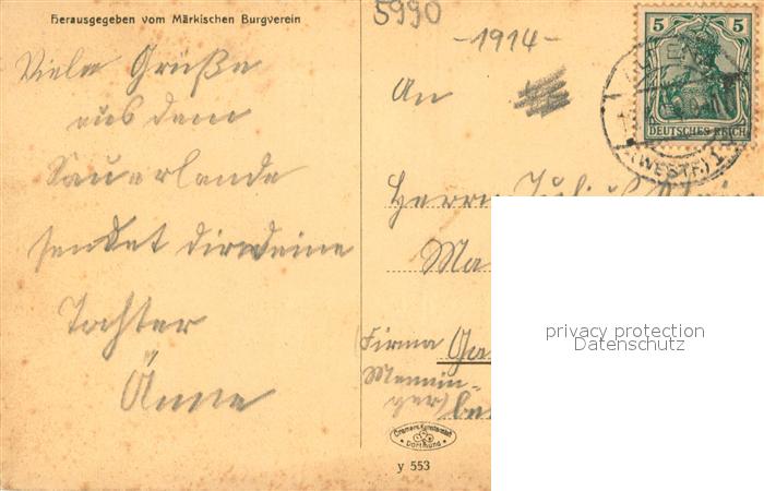 73692306 alte Postkarte Altena Lenne Burg Altena postalisch gelaufen Erhaltung siehe scans [WerneD78] KatCode: 11110005962004