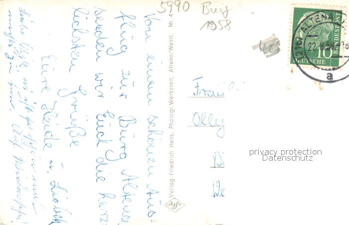 73692308 alte Postkarte Altena Lenne Burg Altena postalisch gelaufen Erhaltung siehe scans [WerneD78] KatCode: 11110005962004