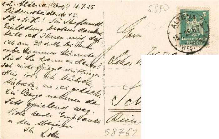 73943757 alte Postkarte Altena Lenne Fliegeraufnahme postalisch gelaufen Erhaltung siehe scans [WerneD78] KatCode: 11110005962004