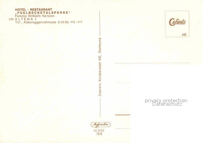 72709583 Altena Lenne Hotel Restaurant Fuelbecketalsperre postalisch nicht gelaufen Erhaltung siehe scans [FriedD77] KatCode: 11110005962004