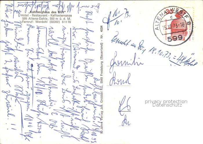 72021738 alte Postkarte Altena Lenne Kohlberghaus des SGV postalisch gelaufen Erhaltung siehe scans KatCode: 11110005962004