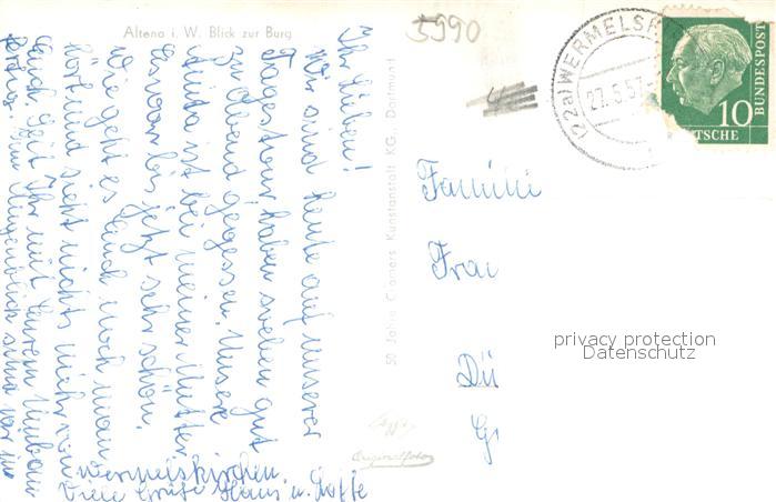 73692310 alte Postkarte Altena Lenne Panorama mit Burg postalisch gelaufen Erhaltung siehe scans [WerneD78] KatCode: 11110005962004