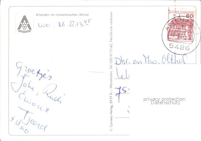 72433501 alte Postkarte Altenahr postalisch gelaufen Erhaltung siehe scans KatCode: 11110007131003