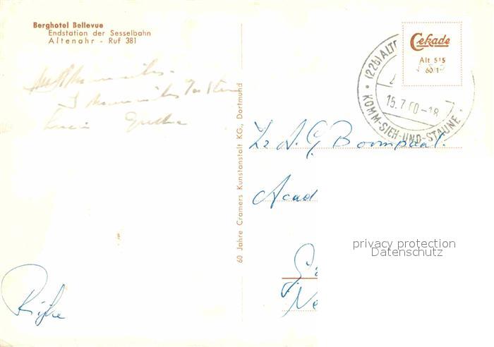 72795678 alte Postkarte Altenahr Berghotel Bellevue Fliegeraufnahme postalisch gelaufen Erhaltung siehe scans [FriedD77] KatCode: 11110007131003