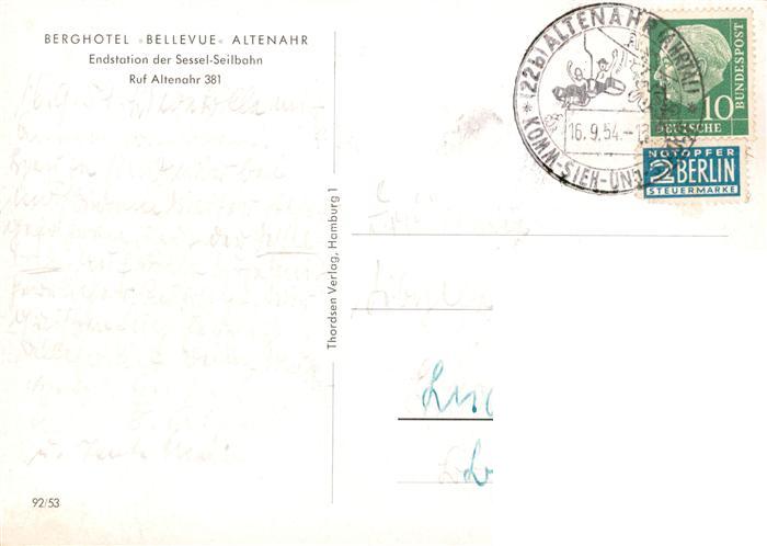 73871678 alte Postkarte Altenahr Berghotel Bellevue Terrasse Endstation der Sessel-Seilbahn Panoramablick postalisch gelaufen Erhaltung siehe scans [FriedD77] KatCode: 11110007131003