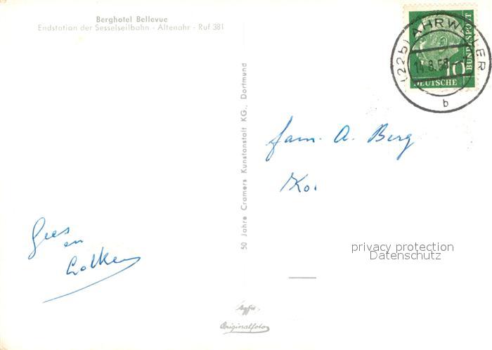 73333227 alte Postkarte Altenahr Berghotel Bellevue Weisses Kreuz Ruine postalisch gelaufen Erhaltung siehe scans [WerneD78] KatCode: 11110007131003