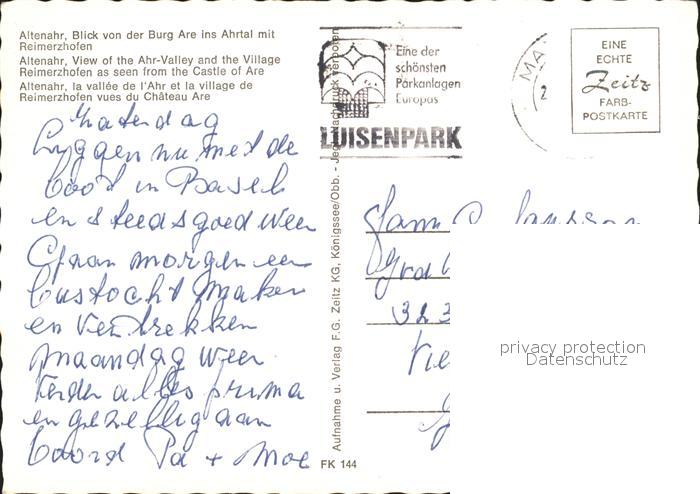 72207391 alte Postkarte Altenahr Blick von Burg Are ins Ahrtal mit Reimerzhofen postalisch gelaufen Erhaltung siehe scans KatCode: 11110007131003