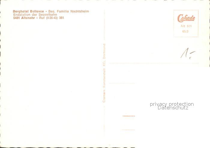 72378377 Altenahr Burgblick Ahrbruecke Kreuzberg Burg Are mit 3 Tunnels Sesselbahn Weisses Kreuz Bellevue Endstation der Seilbahn Campingplatz postalisch nicht gelaufen Erhaltung siehe scans KatCode: 11110007131003