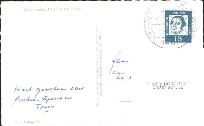 72030554 alte Postkarte Altenahr Campingplatz postalisch gelaufen KatCode: 11110007131003