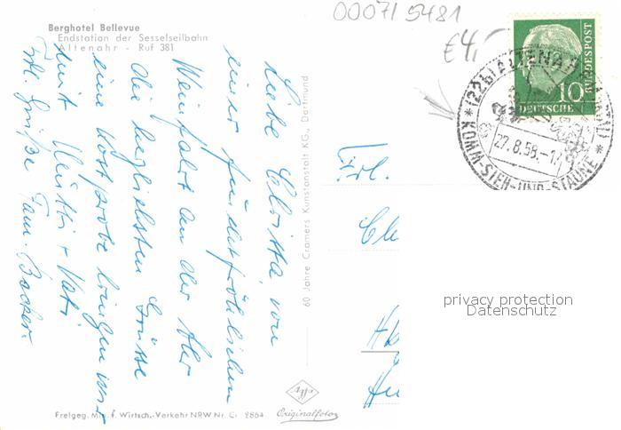 72694040 alte Postkarte Altenahr Fliegeraufnahme postalisch gelaufen Erhaltung siehe scans [FriedD77] KatCode: 11110007131003