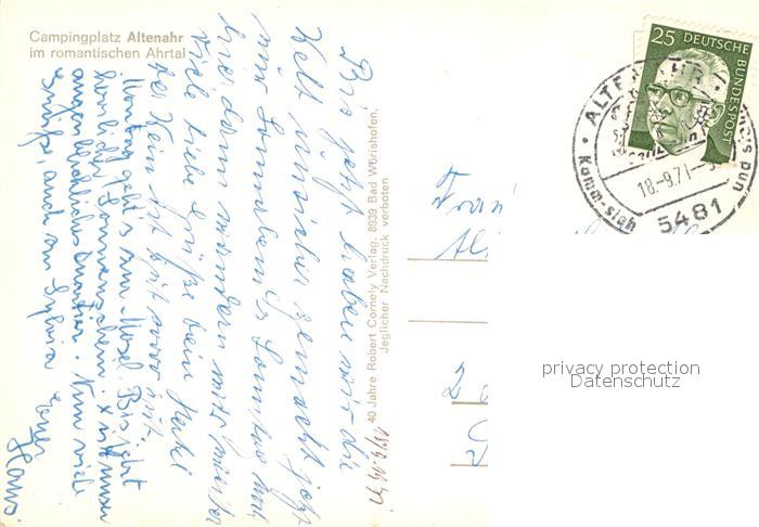 72987536 alte Postkarte Altenahr Fliegeraufnahme Camping und Ahre postalisch gelaufen Erhaltung siehe scans [LiesaD40] KatCode: 11110007131003