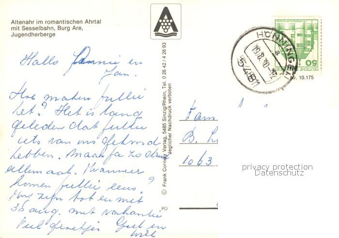 73306605 alte Postkarte Altenahr Fliegeraufnahme Orts und Teilansichten postalisch gelaufen Erhaltung siehe scans [WerneD78] KatCode: 11110007131003