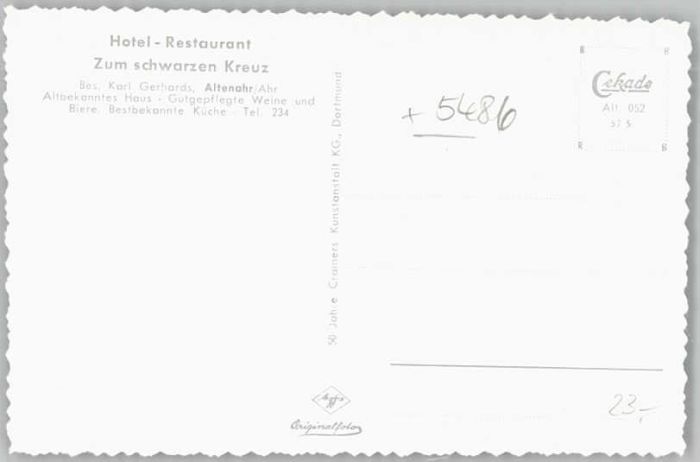 40264930 Altenahr Hotel Restaurant Zum Schwarzen Kreuz KatCode 11110007131003