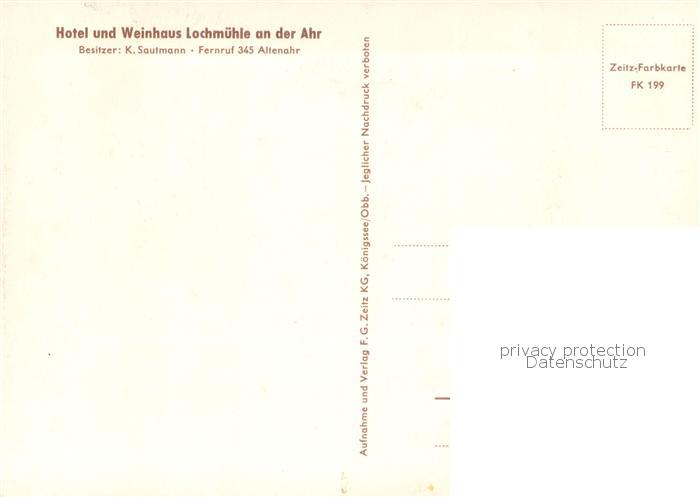 73776012 Altenahr Hotel und Weinhaus Lochmuehle an der Ahr postalisch nicht gelaufen Erhaltung siehe scans [WerneD78] KatCode: 11110007131003