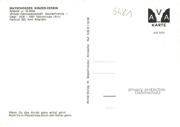 74050141 Altenahr Mayschosser Winzerverein Weinkeller Probierstube postalisch nicht gelaufen Erhaltung siehe scans [WerneD78] KatCode: 11110007131003