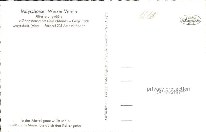 72453765 Altenahr Mayschosser Winzerverein Weinkeller Weinfass postalisch nicht gelaufen Erhaltung siehe scans KatCode: 11110007131003