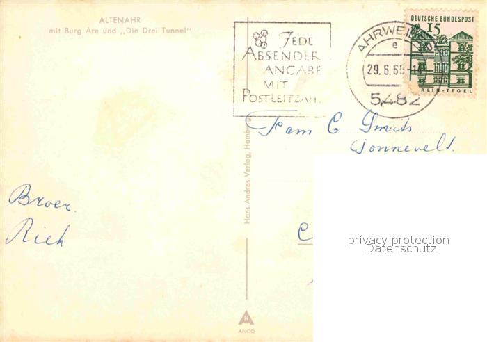 72655038 alte Postkarte Altenahr mit Burg Are und Die Drei Tunnel postalisch gelaufen Erhaltung siehe scans [LiesaD40] KatCode: 11110007131003