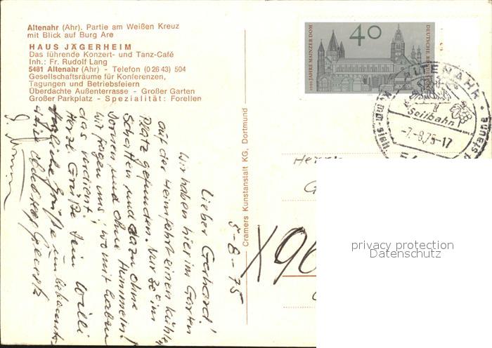 72455094 alte Postkarte Altenahr Partie am Weissen Kreuz Blick auf Burg Are postalisch gelaufen Erhaltung siehe scans KatCode: 11110007131003