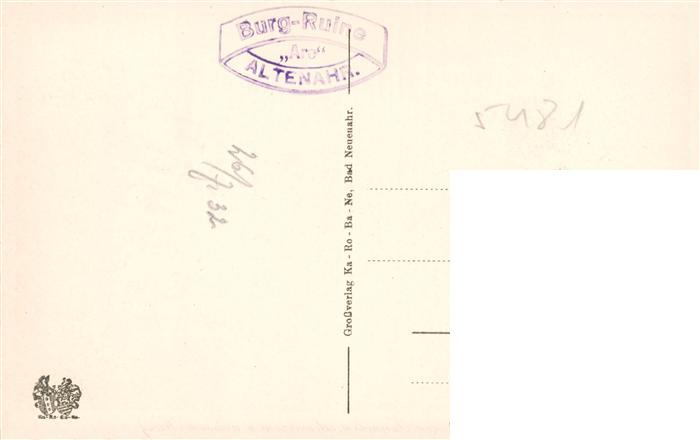 73943772 Altenahr Total mit Burgruine Tunnels und schwarzem und weissem Kreuz postalisch nicht gelaufen Erhaltung siehe scans [WerneD78] KatCode: 11110007131003
