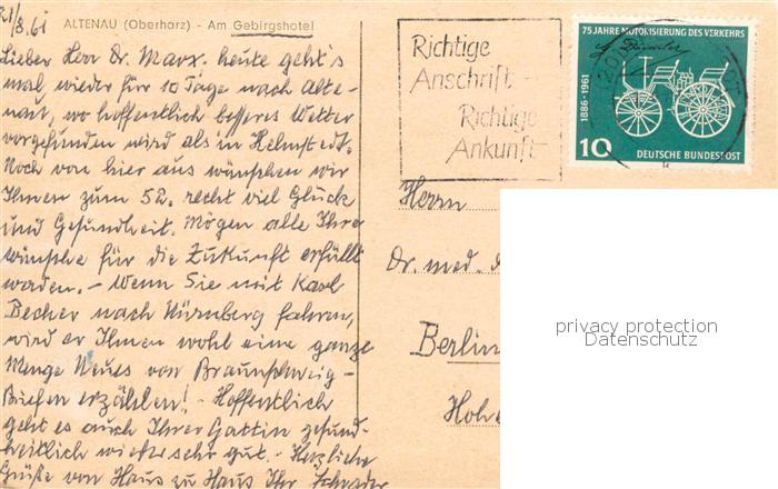 73807575 alte Postkarte Altenau Harz Am Gebirgshotel postalisch gelaufen Erhaltung siehe scans [WerneD78] KatCode: 11110003153001