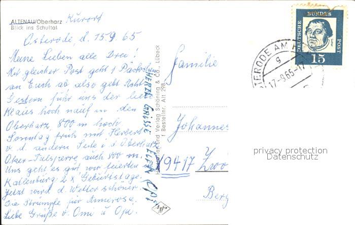 72444855 alte Postkarte Altenau Harz Blick ins Schultal postalisch gelaufen Erhaltung siehe scans KatCode: 11110003153001