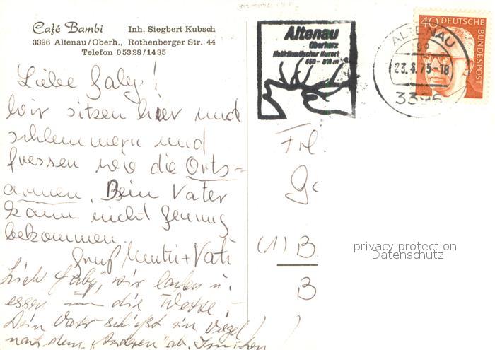 73615372 alte Postkarte Altenau Harz Cafe Bambi Gastraeume postalisch gelaufen Erhaltung siehe scans [WerneD78] KatCode: 11110003153001