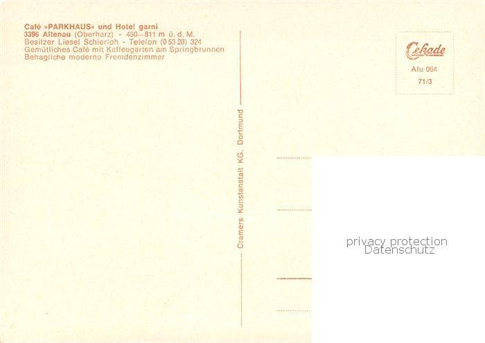 73763428 Altenau Harz Cafe Parkhaus u. Hotel garni Aussenansicht Holzhaus postalisch nicht gelaufen Erhaltung siehe scans [LiesaD40] KatCode: 11110003153001