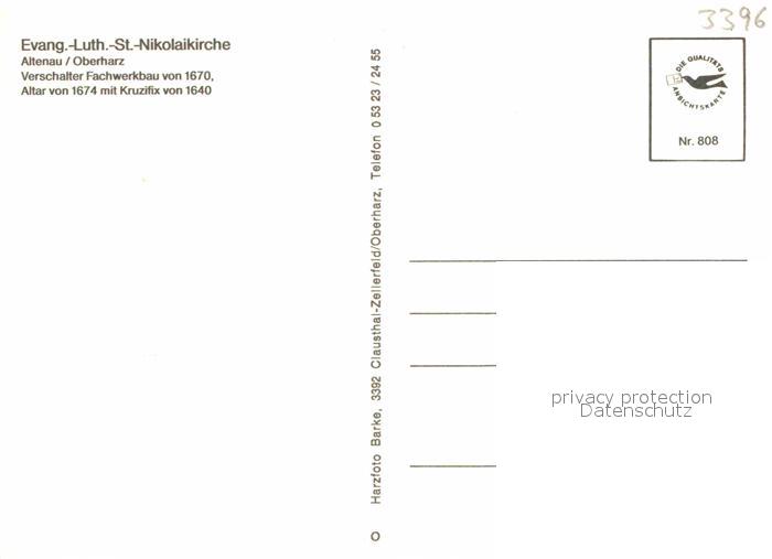 72910729 Altenau Harz Evangelisch lutherische St Nikolaikirche Fachwerk 17. Jhdt. postalisch nicht gelaufen Erhaltung siehe scans [FriedD77] KatCode: 11110003153001