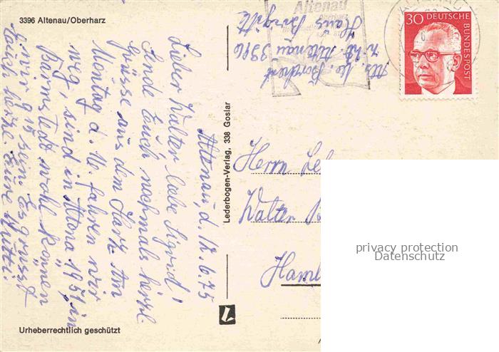 74152866 alte Postkarte Altenau Harz Gemkenthal Niedersachsen Altenau Bornkappe Haus Hannover Im Schwarzwald VW Heim Blick vom Kunstberg Kurhotel Polizeiheim postalisch gelaufen Erhaltung siehe scans [WerneD78] KatCode: 11110003153001