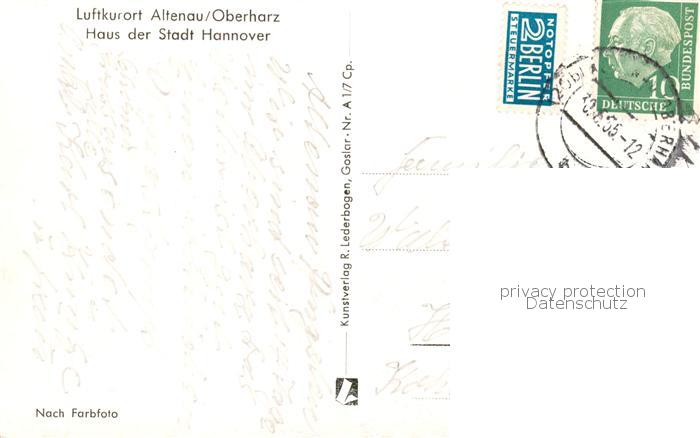 73809739 alte Postkarte Altenau Harz Haus der Stadt Hannover Hoehenluftkurort postalisch gelaufen Erhaltung siehe scans [FriedD77] KatCode: 11110003153001