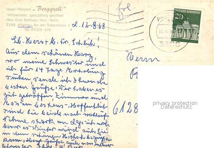 73122126 alte Postkarte Altenau Harz Hotel Bergquell postalisch gelaufen Erhaltung siehe scans [NatalD47] KatCode: 11110003153001