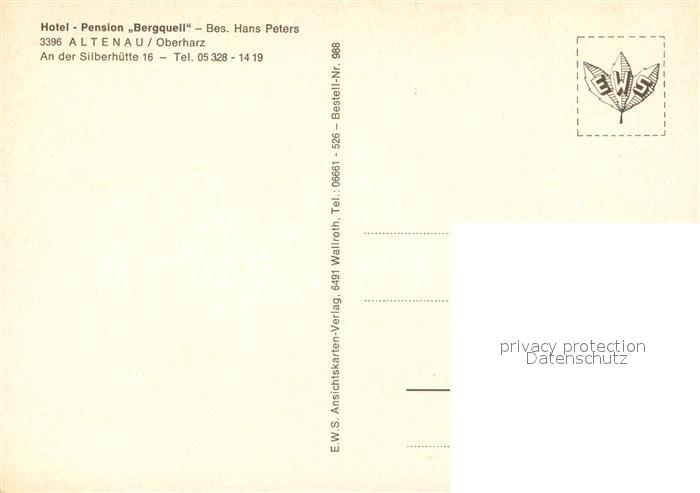 73244829 Altenau Harz Hotel Pension Bergquell postalisch nicht gelaufen Erhaltung siehe scans [KathaD81] KatCode: 11110003153001