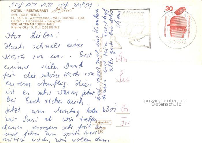 72010393 alte Postkarte Altenau Harz Hotel Restaurant Heins postalisch gelaufen Erhaltung siehe scans KatCode: 11110003153001