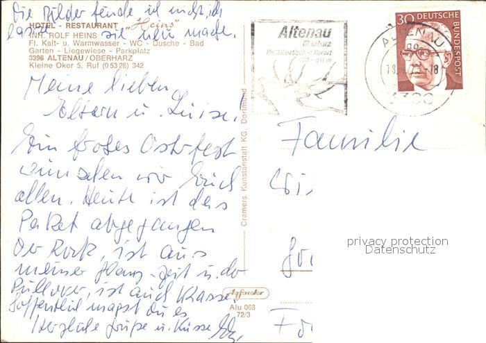 72012217 alte Postkarte Altenau Harz Hotel Restaurant Heins postalisch gelaufen Erhaltung siehe scans KatCode: 11110003153001
