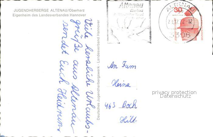 72072449 alte Postkarte Altenau Harz Jugendherberge postalisch gelaufen Erhaltung siehe scans KatCode: 11110003153001