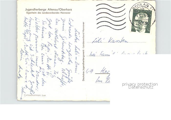 72582565 alte Postkarte Altenau Harz Jugendherberge Landschaft Strassenpartie Badesee postalisch gelaufen Erhaltung siehe scans [FriedD77] KatCode: 11110003153001