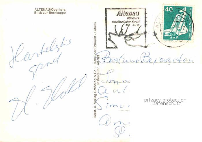 72865102 alte Postkarte Altenau Harz mit Bornkappe postalisch gelaufen Erhaltung siehe scans [LiesaD40] KatCode: 11110003153001
