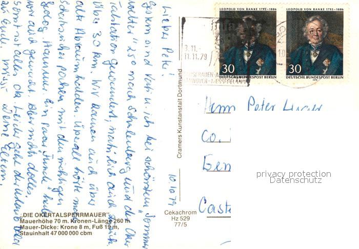73117117 alte Postkarte Altenau Harz Okertalsperrmauer postalisch gelaufen Erhaltung siehe scans [NatalD47] KatCode: 11110003153001