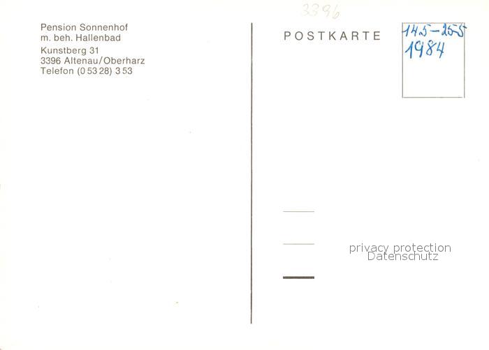 73162165 Altenau Harz Pension Sonnenhof postalisch nicht gelaufen Erhaltung siehe scans [LiesaD40] KatCode: 11110003153001