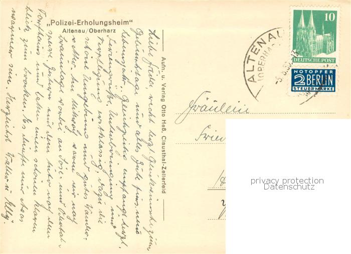 73759809 alte Postkarte Altenau Harz Polizei Erholungsheim postalisch gelaufen Erhaltung siehe scans [FriedD77] KatCode: 11110003153001