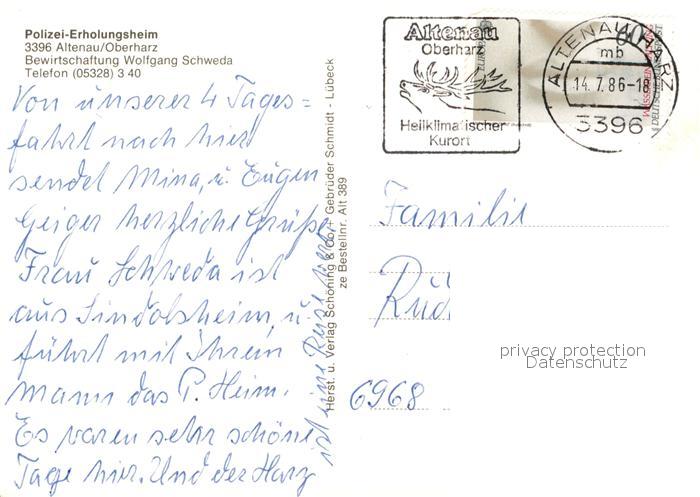 73124045 alte Postkarte Altenau Harz Polizei-Erholungsheim postalisch gelaufen Erhaltung siehe scans [NatalD47] KatCode: 11110003153001