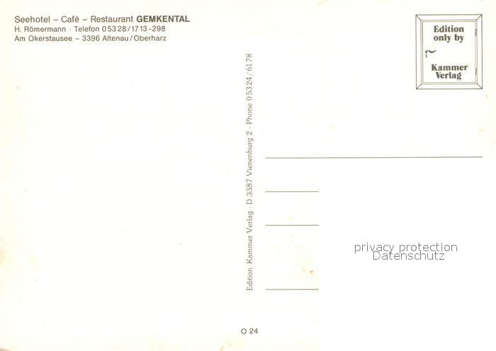 72971304 Altenau Harz Restaurant Gemkental postalisch nicht gelaufen Erhaltung siehe scans [PaolaD17] KatCode: 11110003153001