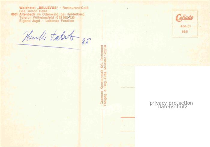 74048523 Altenbach Baden Fliegeraufnahme Waldhotel Bellevue postalisch nicht gelaufen Erhaltung siehe scans [WerneD78] KatCode: 11110008226082