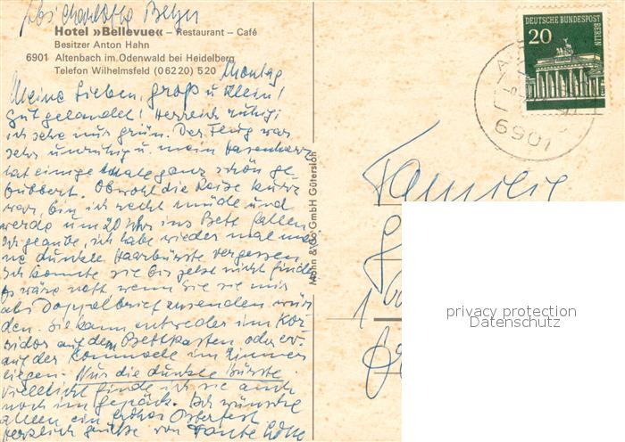 73645154 alte Postkarte Altenbach Baden Hotel Bellevue Restaurant postalisch gelaufen Erhaltung siehe scans [WerneD78] KatCode: 11110008226082