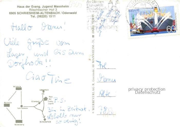 74048772 alte Postkarte Altenbach Baden Seminar und Freizeithaus Schriesheim postalisch gelaufen Erhaltung siehe scans [WerneD78] KatCode: 11110008226082