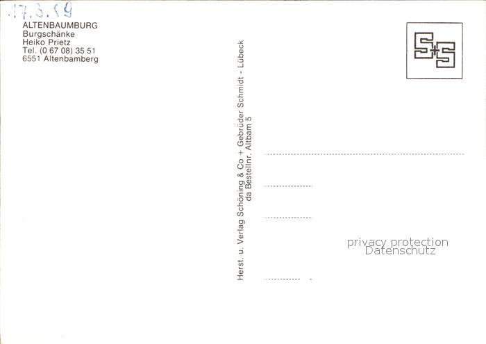 72257377 Altenbamberg Altenbaumburg Burgschaenke postalisch nicht gelaufen Erhaltung siehe scans KatCode: 11110007133003